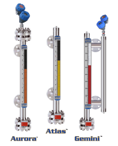 Gemini®, Aurora® and Atlas® are the ultimate choice for Magnetic level indicators they offer innovative level measurement using magnetic float and a high-visibility indicator in the primary chamber . a separately operating secondry chamber can be added for a layer of redundancy and